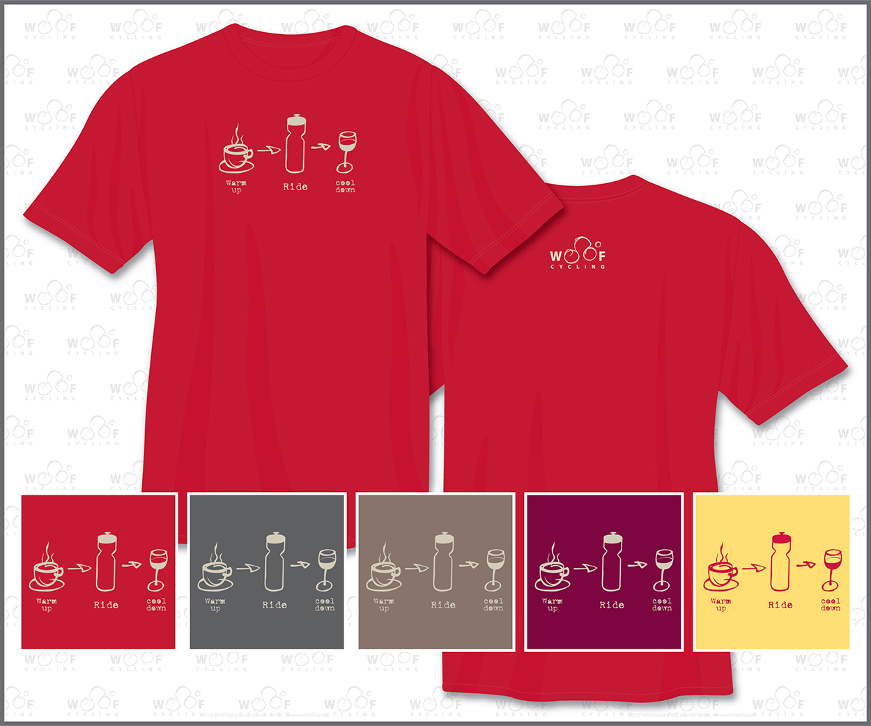 Front: Warm Up, Ride, Cool Down (wine) Back: WC Cyclist Logo