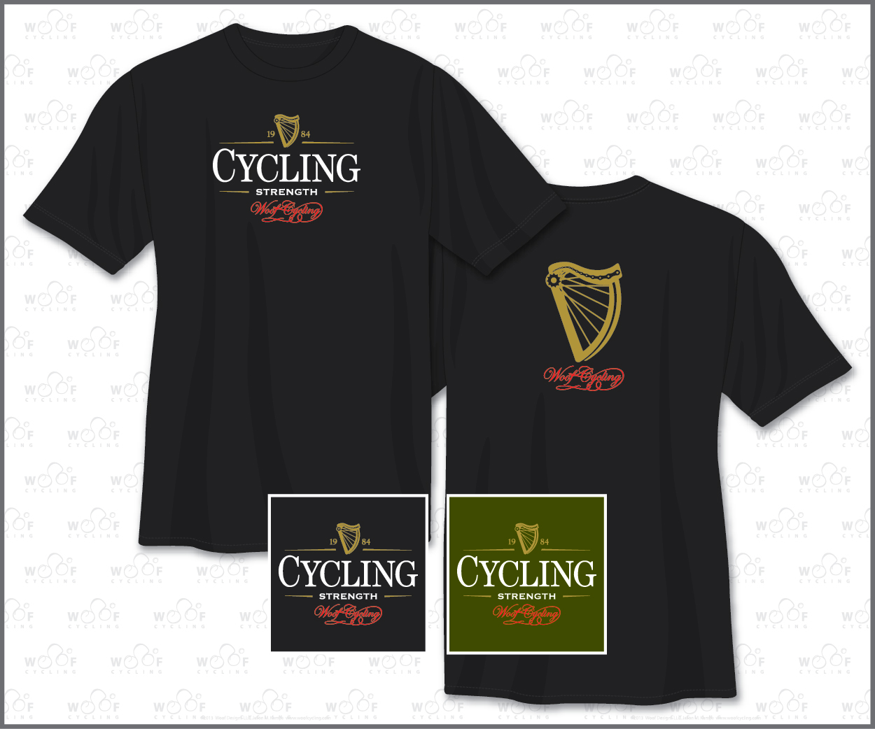 Front: Cycling Strength logo Back: WC Bike Harp Logo